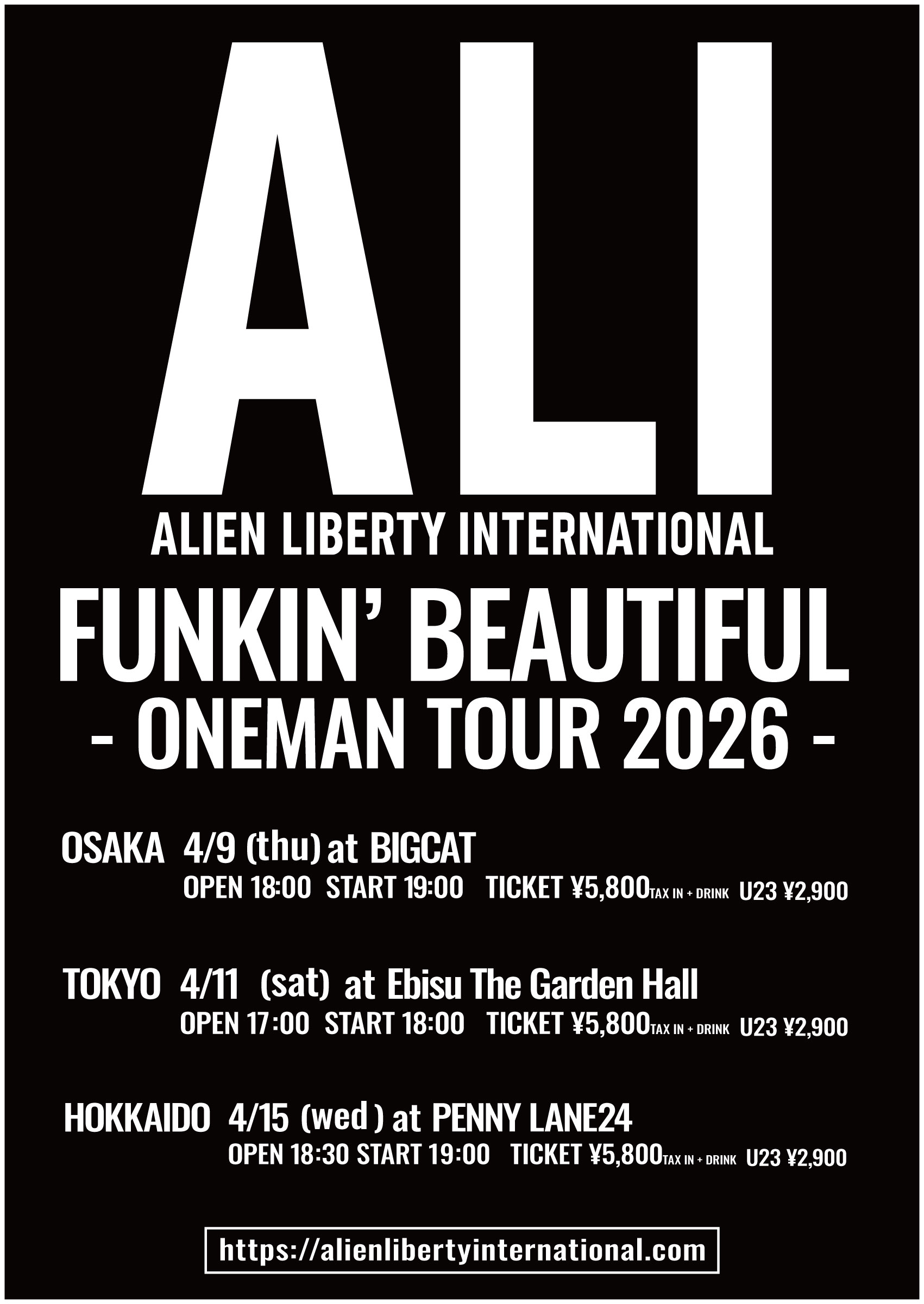 世界中で活動するALI、台湾・高雄・上海・広州・バンコク・ソウル・アルゼンチン・サンディエゴ世界中で活動するALIのJAPAN TOUR!!ぜひお越しください!!
